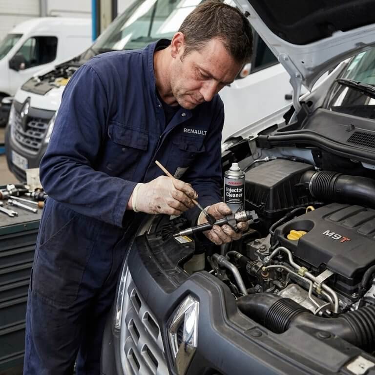 Lorsque le voyant de préchauffage clignote en raison d’une défaillance moteur diesel et non d’un problème de préchauffage proprement dit, les solutions dépendent de la nature du défaut identifié par le diagnostic. Un défaut d’injecteur nécessite le contrôle du débit et de la pulvérisation de chaque injecteur, suivi d’un nettoyage ou d’un remplacement. Un problème de pression dans la rampe commune peut provenir de la pompe haute pression, du régulateur de pression ou d’une fuite sur un raccord. Le capteur de pression de suralimentation défaillant se remplace facilement sur le Master 3, sa localisation en partie haute du moteur facilitant l’accès technique. Chacune de ces interventions nécessite un diagnostic précis et un outillage adapté, justifiant le recours à un garage spécialisé en utilitaires diesel.